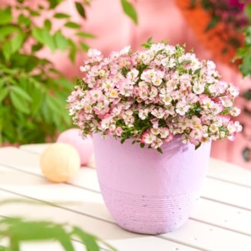 Роза сорт Cutie Pie (‘ROP007’ PBR) е ново и изключително атрактивно попълнение сред декоративните рози. Идеална за отглеждане в саксии, кашпи и предни позиции в градината. Растението образува компактен, нисък и разклоняващ се храст с гладки, безбодливи стъбла. През цялото лято е обилно обсипано с нежни, ефектни цветове, наподобяващи ябълков цвят, които придават свеж и елегантен вид на всяко пространство.